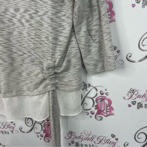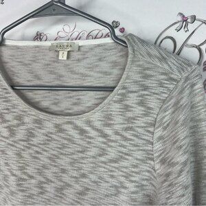 Elevate your wardrobe with this elegant gray and white blouse. Perfect for both casual and professional settings. Small.