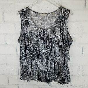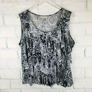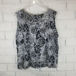Laura Ashley black and white geometric design tank. Size 2X. Flattering scoop neckline. Approximate measurements are pit to pit 25". Length 24". Perfect for a spring day.