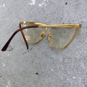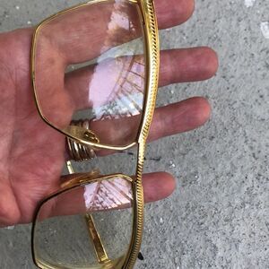 Super nice vintage gold frame glasses. you need to drop your own prescription lenses in these frames. Measuring through the inside is 5.5 inches across the bridge. Made in Italy
