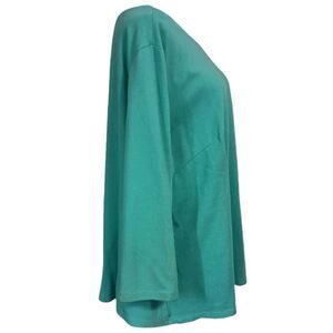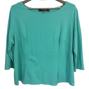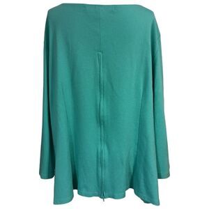 Laura Byrnes Zipper Back Top 4X Plus Size Blouse Aqua Pinup Girl Jersey Knit. Condition is pre-owned with no rips, tears, holes or discolorations. Made in the United States. Thick stretch knit with back zipper detail.
