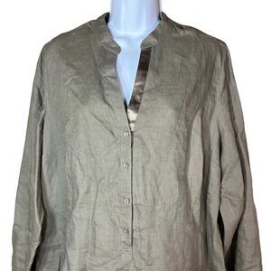 Laura Clement Collection 100% Linen Top. Great condition, there is one small flaw in the fabric shown in pic. Very nice minimalist Top. Size 16