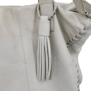 Laura Di Maggio Leather Convertible Tote Crossbody Off White Bone XL Tassel