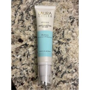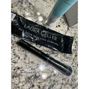 Laura Geller bundle including Spackle Hydrate skin perfecting primer 2fl Oz. Two in one moisturizer and primer. Improves foundation application and wear. Brightens and replenishes skin. Never sticky. Dewdreamer 0.5 illuminating drops in Diamond Dust. Add glow to your routine by adding a drop to primer or foundation. Foundation brush, vegan, never sheds, blends seamlessly. All new and sealed.