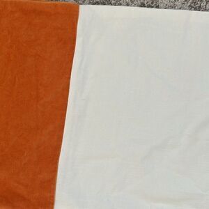 Bed or sofa roll pillow cover in cotton. Orange velvet center and cream/ivory ends with zipper closure. In VGUC.