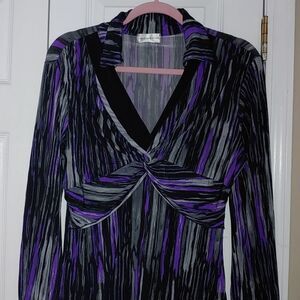 Laura Petites purple gray black collar blouse
