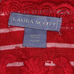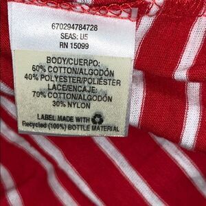 Laura Scott cotton blend red / white stripped top with lace accent on the back
