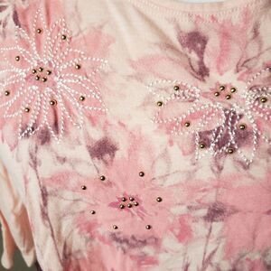 Pre-owned excellent condition long sleeve beaded floral peach blouse