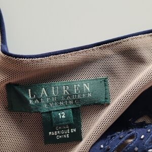 Lauran ralph lauren navy blue sleeveless long evening gown