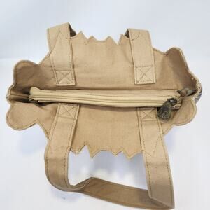 Laurel Burch three 3 cats brown green white small canvas tote bag purse with cat zipper pull, top handles, inner zipper pocket. Signed Accessory Folk Art Feline Friends Designer