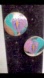 -Purple lavender colored flower with turquoise leaf on a silver tone, disk shape earring