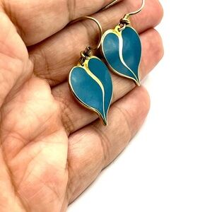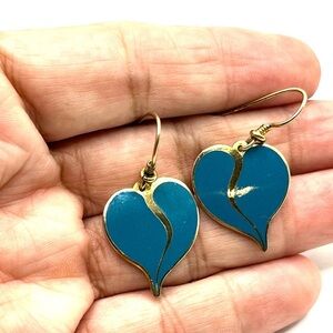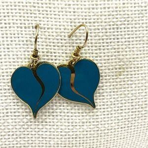 Laurel Burch Blue and Gold Heart Earrings Gold Plated Fish Hook Earrings