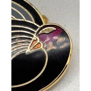 Laurel Burch Celan Black Swan Bird Enamel Goldtone Brooch Pin 1.5” Vintage EUC