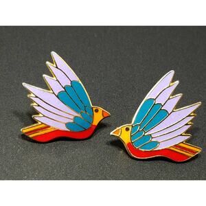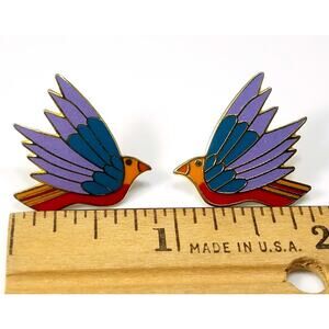 Laurel Burch "Celeste" Bird Earrings, Gold Plated Cloisonne Enamel, 1980s