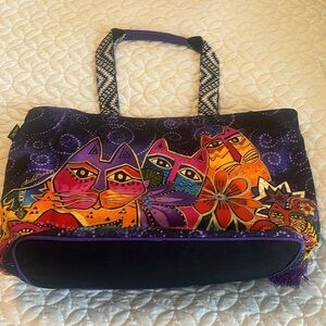 Laurel Burch Colorful Cats Large Tote Bag Inside lined w/ spray-in waterproofing