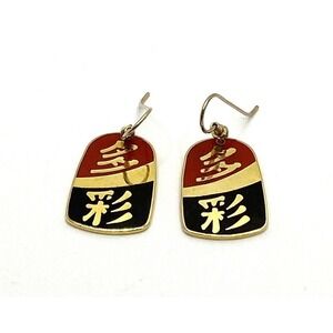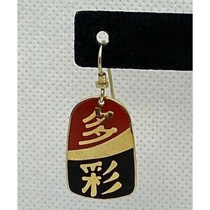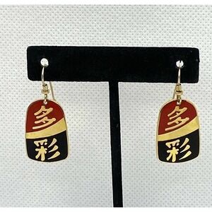 Laurel Burch Earrings VINTAGE Chinese Character Asian Lucky Red Black