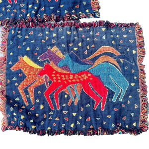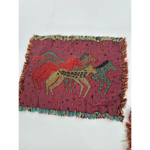 Laurel Burch "Running Horses" Multicolor Tapestry Placemats (2) 12" x 16" Fringe