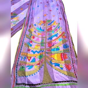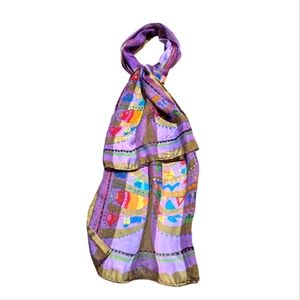 Laurel Burch Silk Cat Scarf Long Artsy Quirky