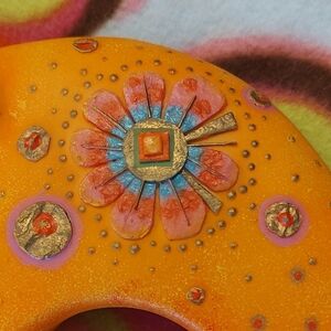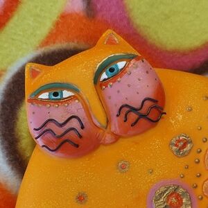 Whimsical cat sculpture with floral patterns from the very collectable Laurel Burch "Flowering Feline". The artist's choice of vibrant colors and playful design make this a must have for art enthusiasts and cat lovers alike! 7" x 6.5"