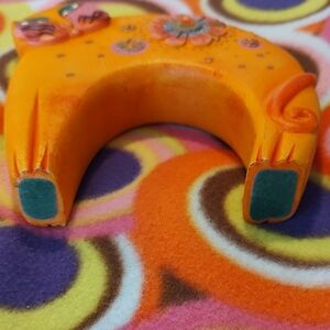 Laurel Burch Vintage Orange Flowering Cat Sculpture Circa 1999