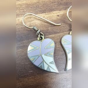 Laurel Burch Vintage Petite Petal Cloisonne Lavender Flower Dangle Earrings