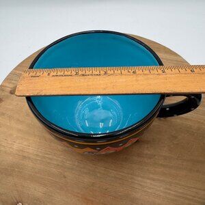 This oversized 18 oz ceramic coffee mug features a vibrant multicolor cat design by Laurel Burch. The black exterior contrasts beautifully with the blue interior, making it a standout piece for any collection. Perfect for coffee or soup lovers.