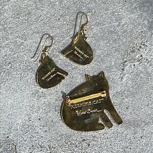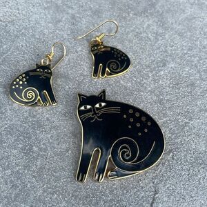 Laurel Burch vintage Keshire cat earring and brooch set like new black