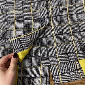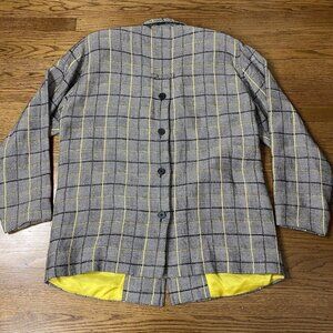 Laurel By Escada Jacket Linen Wool Grey Glen Plaid Yellow Academia Blazer