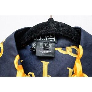 Laurel Escada Silk Blue button down shirt 34 chain link luxury Preppy
