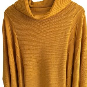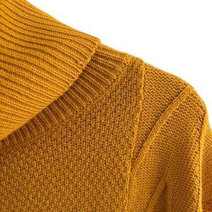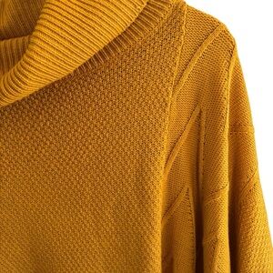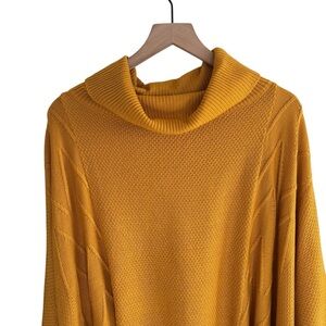 Laurel Grey Mustard Yellow Knit Cowl Neck Poncho Sweater Cozy Fall Layering OS