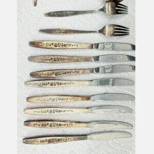 Enhance your dining experience with this exquisite 17 piece place setting from International Silver. This mid-century modern style flatware set features the lovely Laurel Mist pattern and is composed of high-quality silverplate. The set includes all the necessary pieces for a complete place setting, making it perfect for any formal occasion. The age of this set is post-1940, adding a touch of vintage charm to your table. Don't miss out on the opportunity to add this stunning piece to your collection.