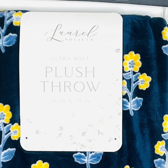 Laurel Society NWT Plush Throw Blanket Navy Blue & Yellow Flowers 50 x 70