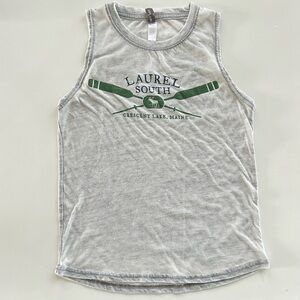 Pale grey with green & navy Laurel South crossed oar Crescent Lake, Maine moose logo graphic