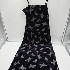 Laurel Whimsy Goth Fairy Bodycon Y2K Butterfly Velvet Burnout Women Midi Dress S