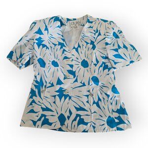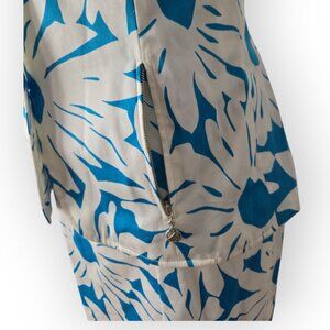 Laurel by ESCADA White Blue Floral Print Short Sleeve Jacket Pencil Skirt 10 NWT