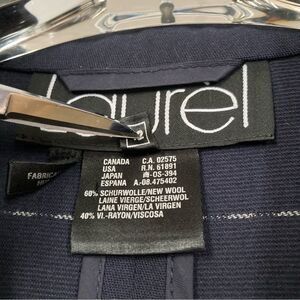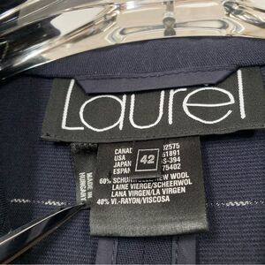 Laurel by Escada Blazer Women 42 Wool Blend Navy Blue Windowpane Plaid Jacket