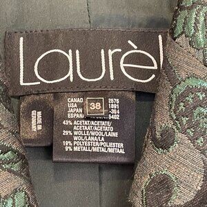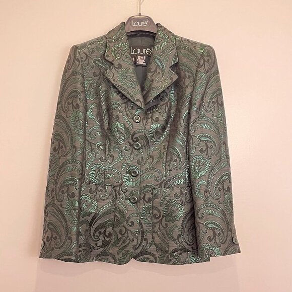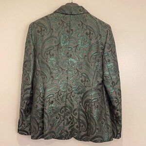 Laurel by Escada Vintage Jacquard Paisley 4 Button Up Blazer Green/Black Size 8