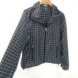 Lauren Active Ralph Lauren Women's Jacket Full Zip Black White Windowpane Check Size Large Long Sleeves Lightweight Activewear Hiking Travel Packable Classic + Pockets