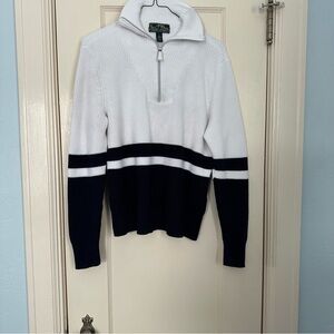 Lauren Active Ralph Lauren Top Athleisure Ribbed Knit Nautical Navy White Size L