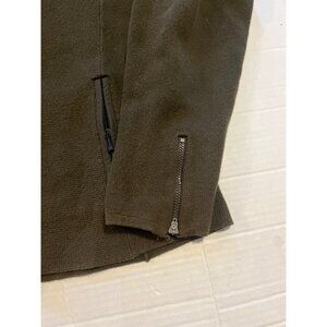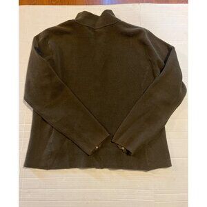 This sweater jacket provides warmth with a 100% cotton. The zippered pockets and cuffs ensure functionality and style. Excellent preowned condition, no rips holes or stains. Ideal for a polished, layered look. See photos for approximate flat measurements. casual, classic, feminine.