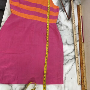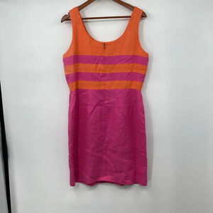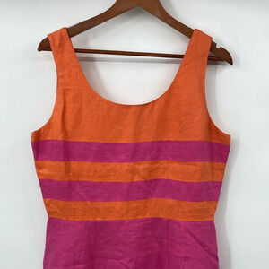 Lauren Alexandra Sheath Dress Womens Size 14 Pink Orange Colorblock Sleeveless. Scoop neck. Zipper Closure. 100% Linen. Dry Clean. Vintage