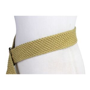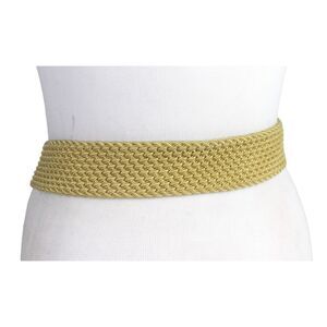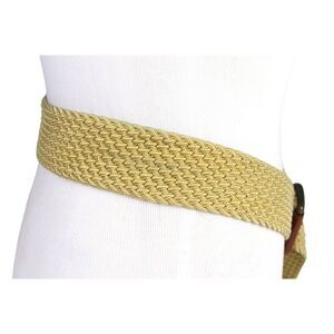 Lauren BRAIDED ELASTIC BEIGE CORD BROWN LEATHER 1 3/4"Wd CASUAL BELT Sz XL (R47