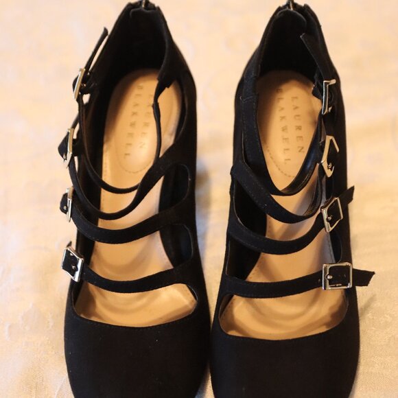 Lauren Blakwell Black Velvet Strappy High Heel Dress Shoe Size 8.5