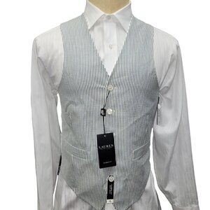 Elevate your formal look with this Lauren By Ralph Lauren Hitchcock Vest. This vest features a classic fit and comes in a size small. It is made of comfortable and high-quality cotton material and has a timeless stripe color design. The vest is perfect for any formal occasions and can be paired with matching suit separates to complete your outfit. Get this brand new vest with tags at a great value of $155.