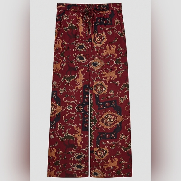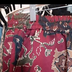Embrace a bohemian vibe with this stunning maxi skirt. Featuring a rich red and brown print, it's perfect for any occasion. Pair it with your favorite top for a chic look.