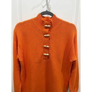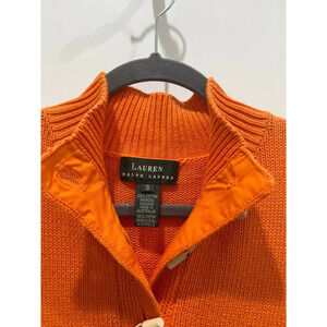 Lauren By Ralph Lauren Orange Fisherman Mock Neck Knit Sweater Sz S