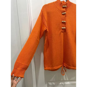 Lauren By Ralph Lauren Orange Fisherman Mock Neck Knit Sweater w/ Drawstring Hem Sz S