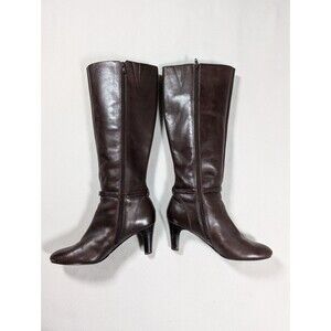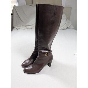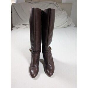 Lauren By Ralph Lauren Sandie Dark Brown Leather Knee Boots Heels Size 7 B
