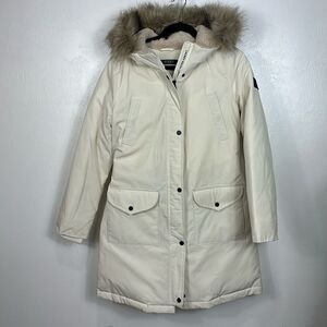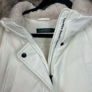 Lauren By Ralph Lauren Women Fur Trimmed Jacket Hooded Ivory Parka Coat Size M