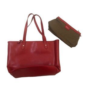 Lauren By Ralph Lauren Saffiano Leather Newbury Tote Bag Red