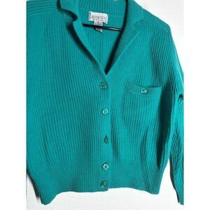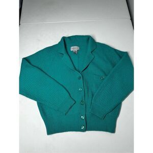 Lauren Cole Angora Lambwool Blend Collared Buttoned Green Cardigan Size P (S)